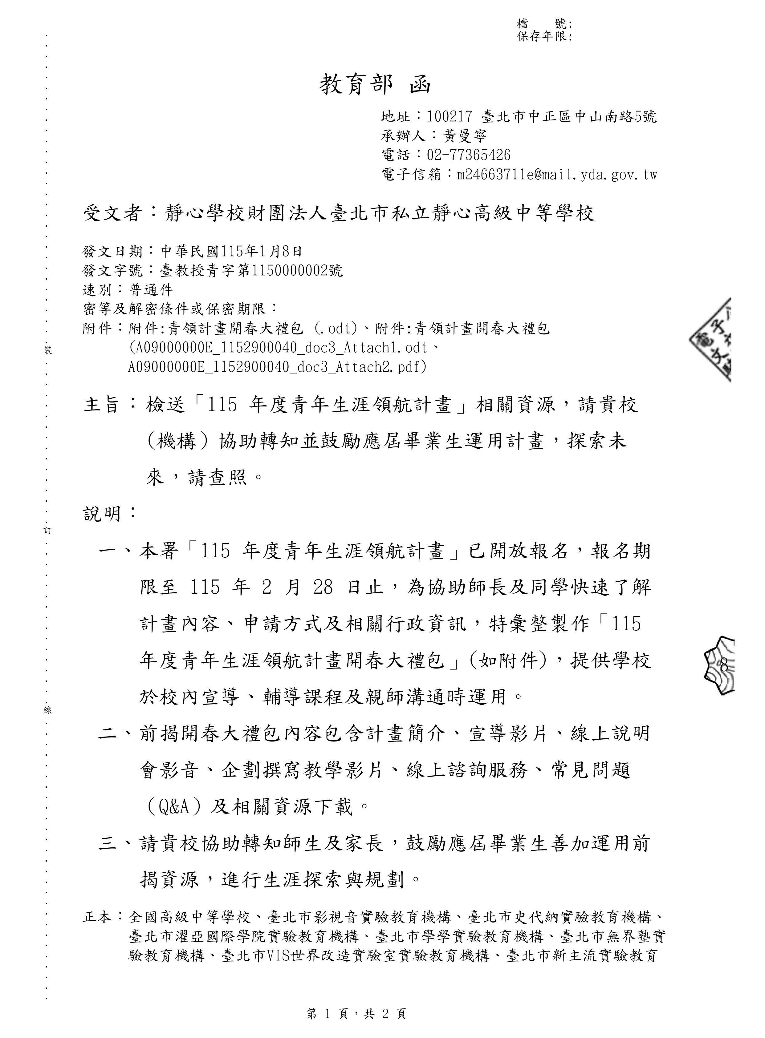 115年度青年生涯領航計畫