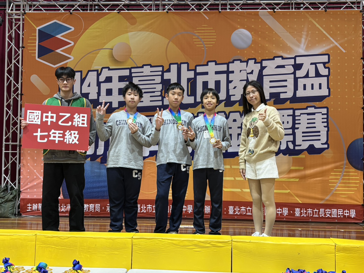 (1)七孝黃○○、楊○○、七信張○○同學榮獲七年級團體第五名。