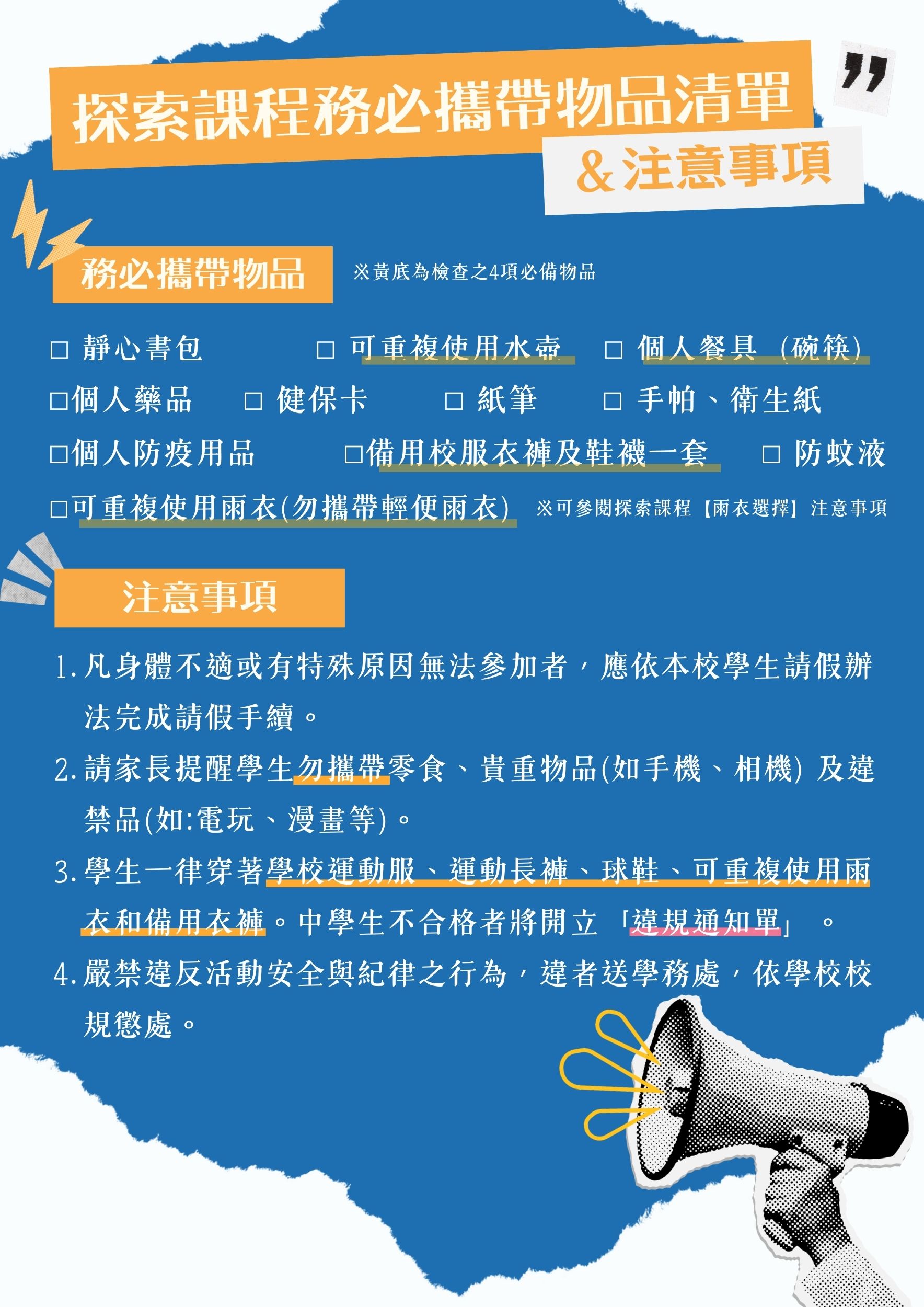 探索課程【務必攜帶物品】清單